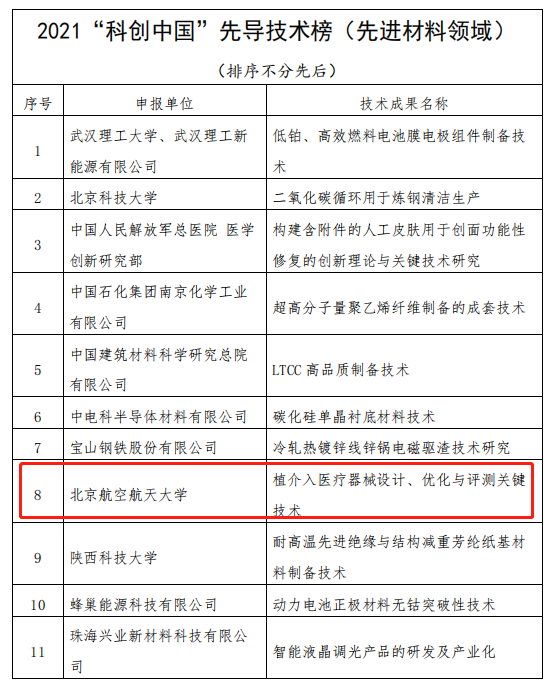 近日,中国科学技术协会召开2022“科创中国”年度工作会议,发布了2021“科创中国”系列榜单。由中国生物材料学会推荐,yl23411永利生物与医学工程学院、医学科学与工程学院、生物医学工程高精尖创新中心、生物力学与力学生物学教育部重点实验室主任樊瑜波教授团队的技术成果“植介入医疗器械设计、优化与评测关键技术”入选2021“科创中国”先导技术榜(先进材料领域);北京市生物医学工程高精尖创新中心入选2021“科创中国”产学研融通组织榜。