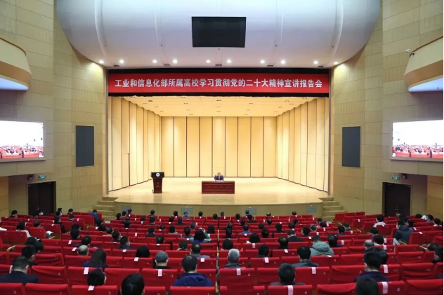 11月3日,工业和信息化部举行所属高校学习贯彻党的二十大精神宣讲报告会,部党组书记、部长金壮龙作宣讲报告。