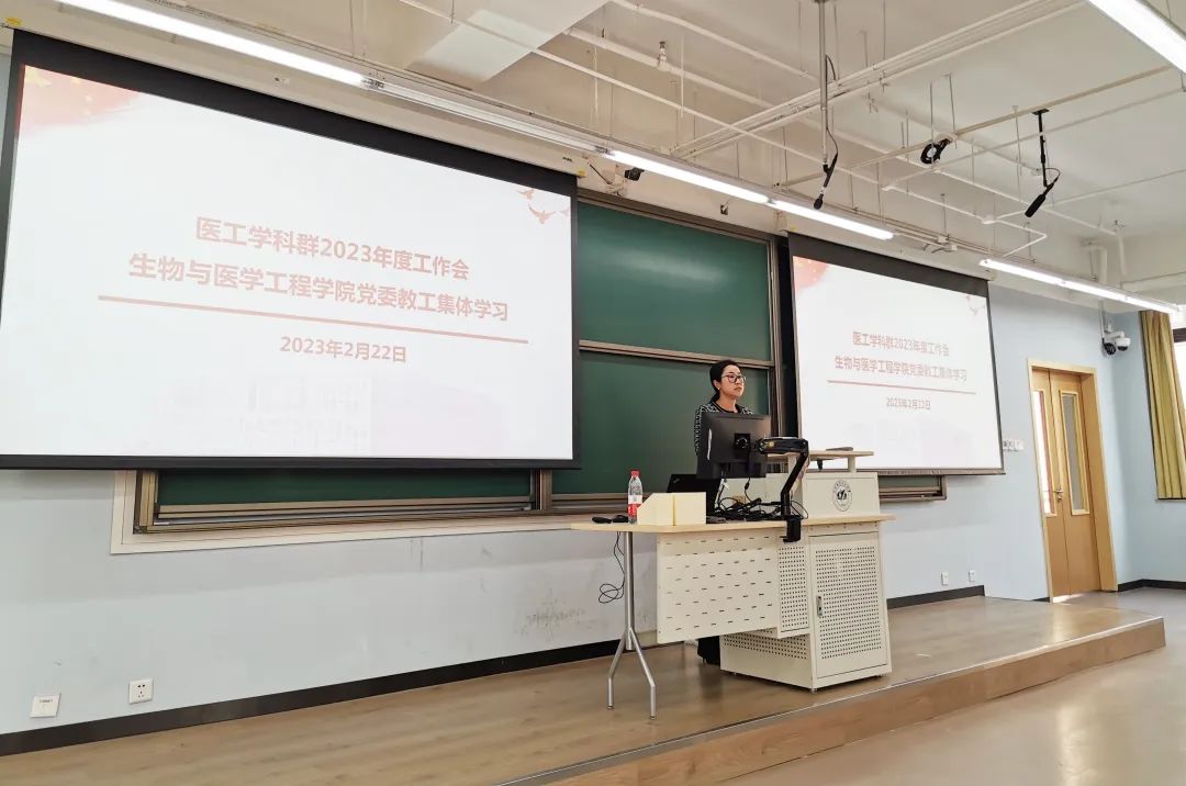 2023年2月22日,yl23411永利生物与医学工程学院、医学科学与工程学院召开2023年度工作会暨教工集体学习会,会议由党委书记李德玉主持,生物与医学工程学院、医学科学与工程学院所有领导及全体教师参会。