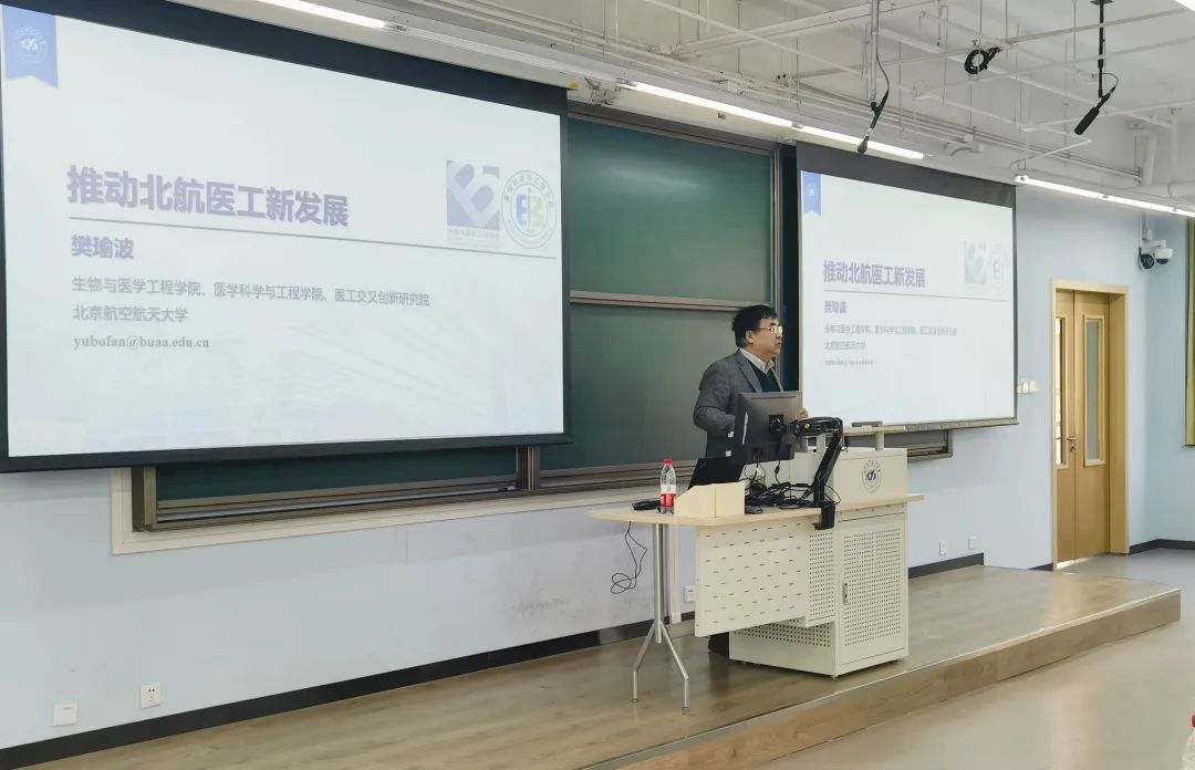 院长樊瑜波教授做了题为“推动北航医工新发展”的主题报告。发展高端智能医疗装备与器械是国家重大战略需求,推动医工交叉融合、协同创新,是打破我国医疗器械产业创新“瓶颈”的关键要素。生物医学工程学科在第五轮学科评估中成为高峰学科,对学科的进一步发展提出了更高要求,当前更需要发扬“精韧不怠、年进有功”的医工精神,补短板、强弱项、扬特色,以更高标准推进学院教学、科研、人才培养等各项工作,涉及学科平台、科研项目、师资队伍建设、人才培养等方面的关键指标,全体教师要齐心协力取得突破。育人决定学院的未来,全体教师要建立先进的教育观,从知识能力与理想责任、通识教育与专业教育、招生工作与学科竞赛、本研一体化、创新创业与国际化、导师制与书院制、定制式辅修专业与全国全校选修课程等方面夯实人才培养工作,传承优秀的院风、学风,延续学院学术交流品牌活动,在人才培养工作中育人、育己、育未来。