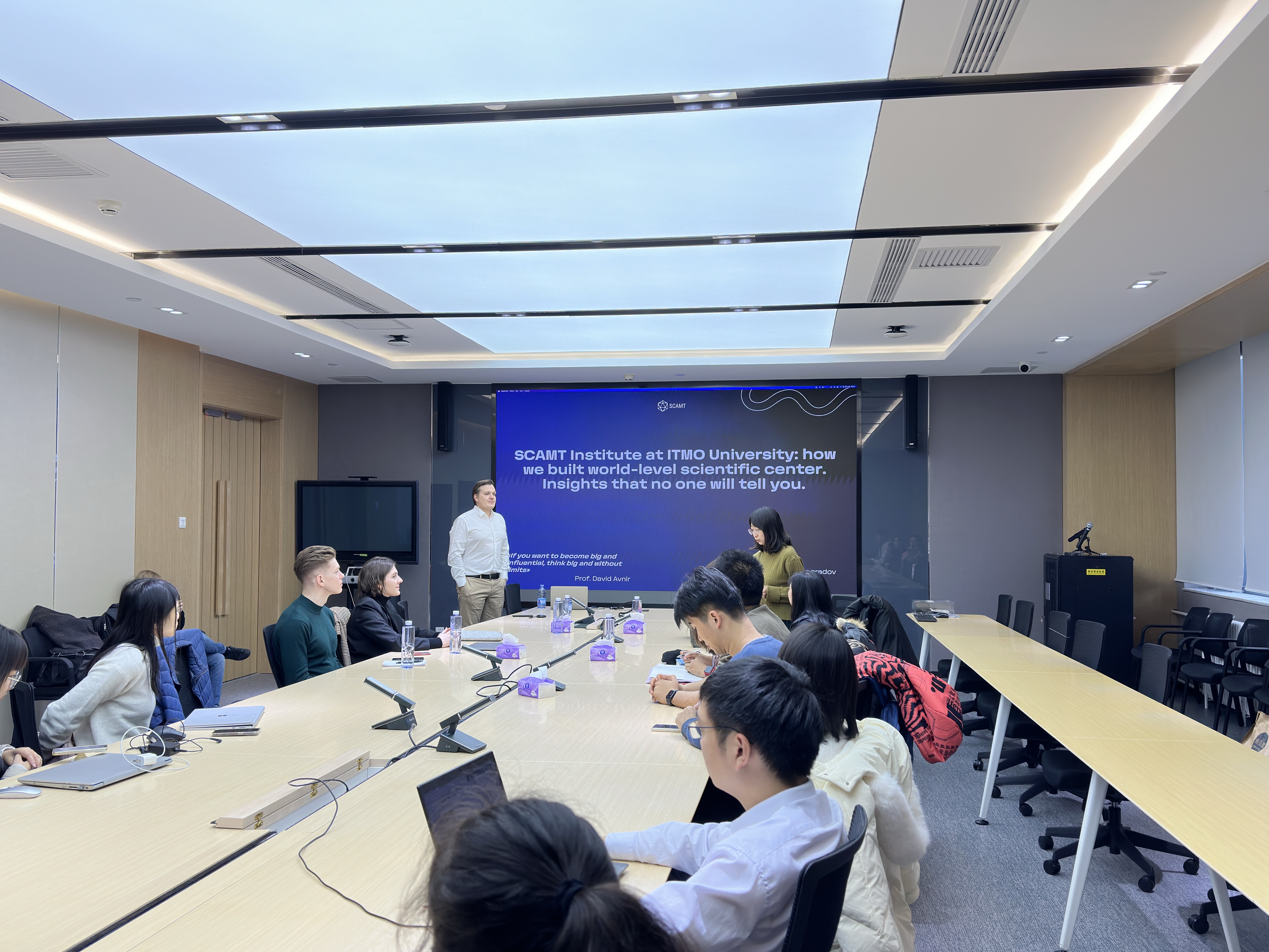 11月28日上午,俄罗斯圣彼得堡ITMO大学先进材料与技术国际溶液化学研究所所长Vladimir Vinogradov教授团队来到yl23411永利医学科学与工程学院进行学术交流,以“SCAMT Institute at ITMO University: how we built world-level scientific center. Insights that no one will tell you”为题为学院师生做了一场精彩的学术报告。北航医学科学与工程学院师生等近20人参会,报告会由孙旭阳副教授主持。
