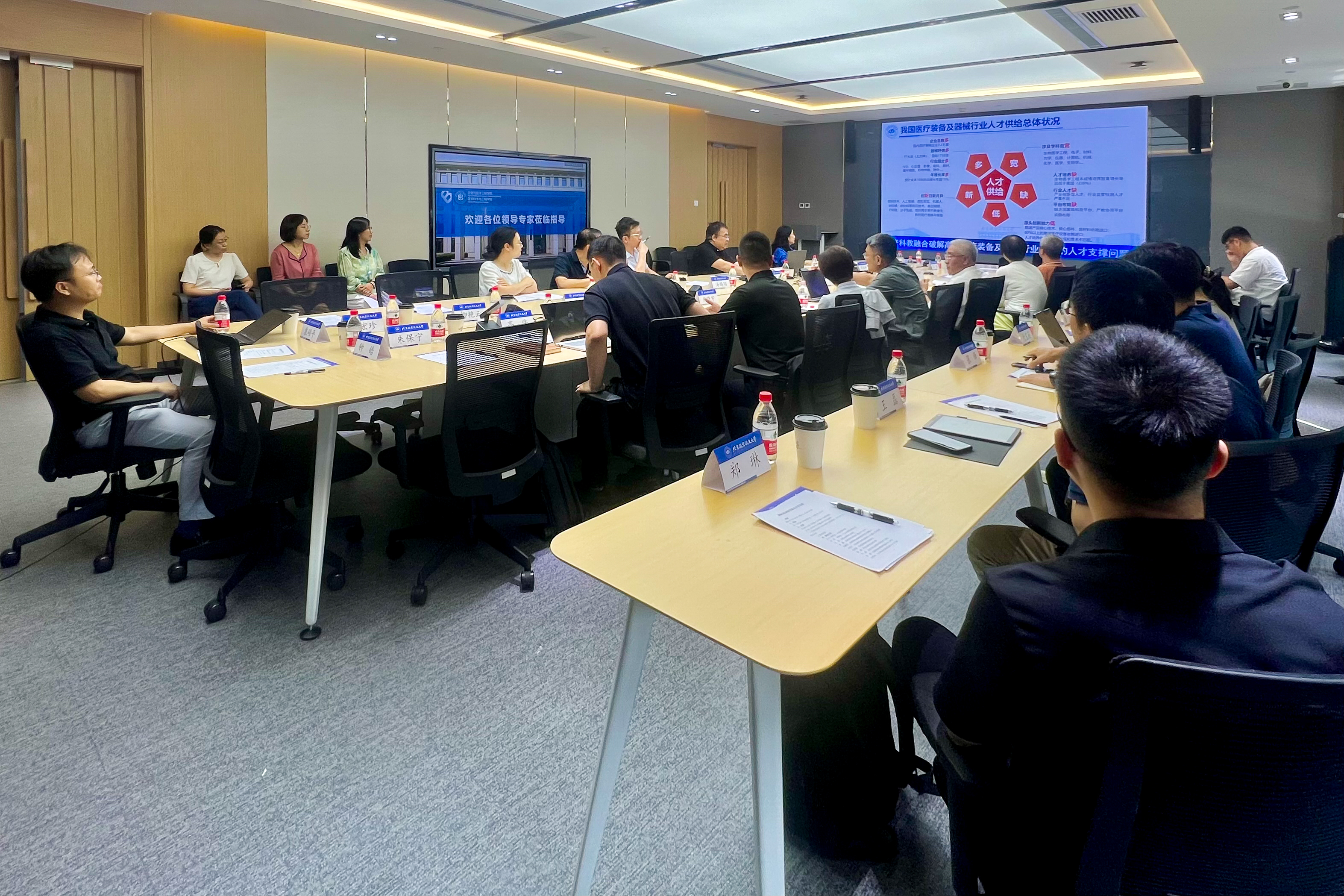 在座谈交流环节,樊瑜波院长就医工学科建设及发展情况进行汇报,重点介绍了医工交叉学科体系和平台,以及近年来北航医工交叉取得的各项成果及转化情况。北航技术转移中心副主任汤鹏翔介绍了学校成果转化体制机制改革情况。