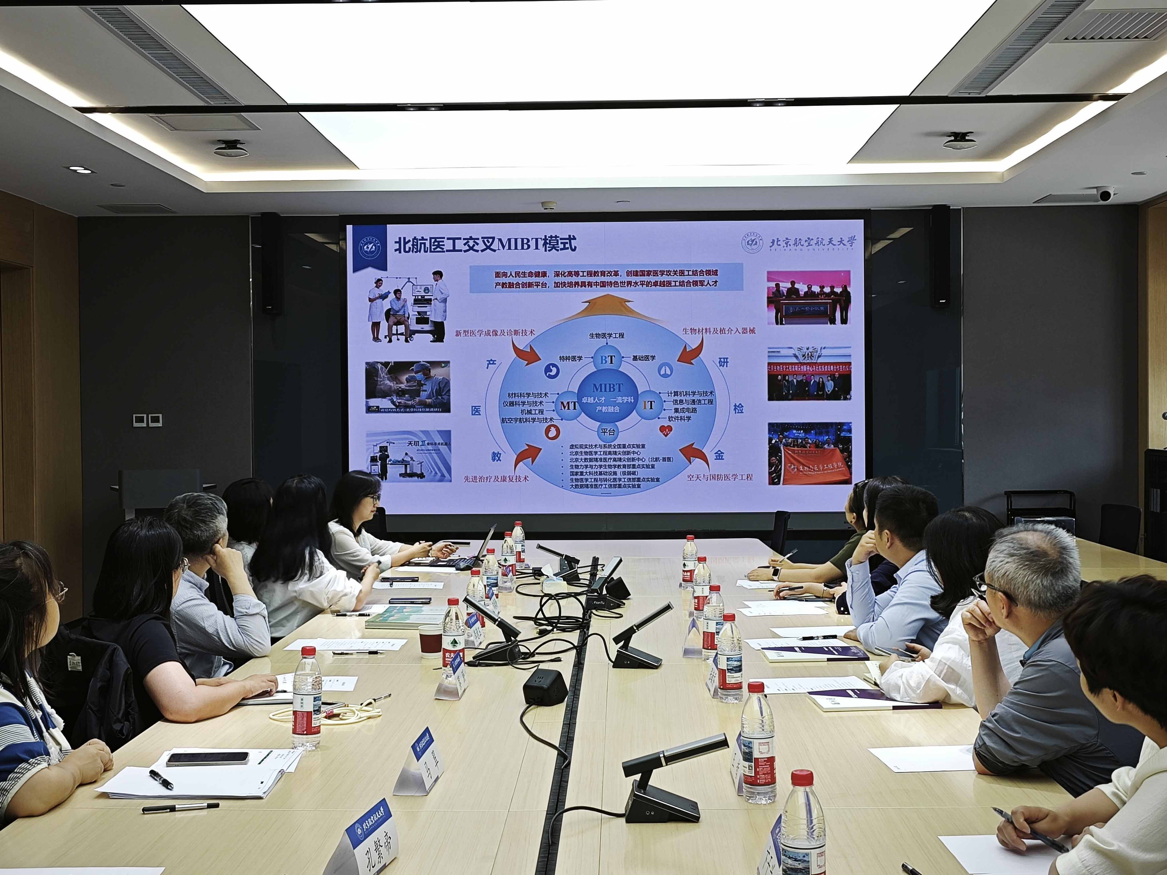 会上,陶春静副院长从医工学科群主要科研方向、专业布局与定位、产-科-教融合的实践育人体系、平台建设以及运行管理等角度出发,介绍了北航医工学科群科教-产教融合全链条发展模式。李德玉书记详细介绍了学院的发展历程,重点分享了学科群在人才培养、科学研究、平台建设及管理模式等方面的创新举措和典型经验。双方围绕生命科学与医学学科发展、科研平台建设等议题进行了深入探讨,就进一步加强交流合作达成共识。